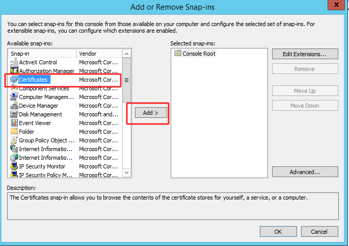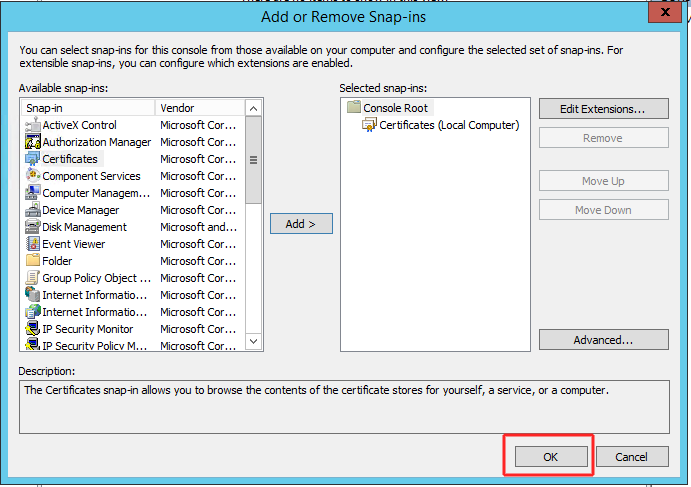 Backing up and Restoring your Data Accessing Certificate Management Accessing Certificate Management Open up a run command and type in MMC From the File Menu choose Add/Remove Snap-in Select Certificates and then press Add Select Computer Account and press Next Select Local Computer and the press Finish Press OK