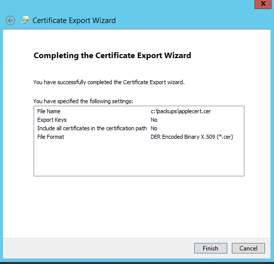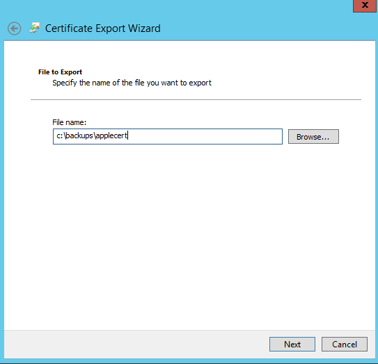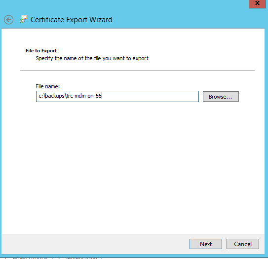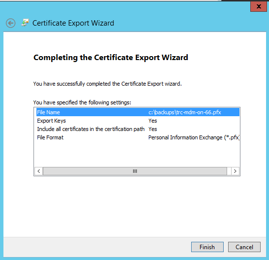 Copy the exported certificate to a safe location off of the server - that way you have the files in the event you need to rebuild a replacement serer to run the MDM Software.