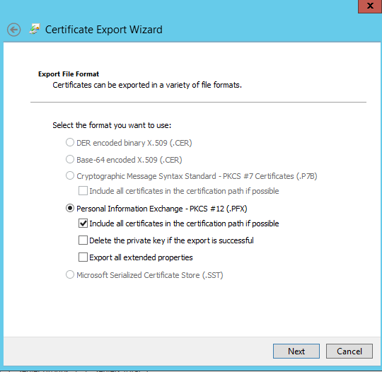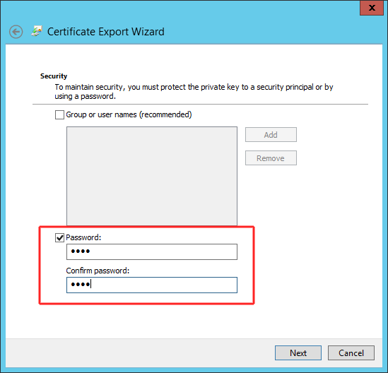 Enter a password that you will use to secure the certificate - this will be required when importing the certificate
