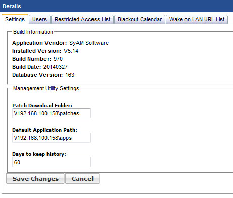 As the Management Utility deploys software across the network you need to configure the utility to access the network share where the applications and patches to be deployed can be stored.