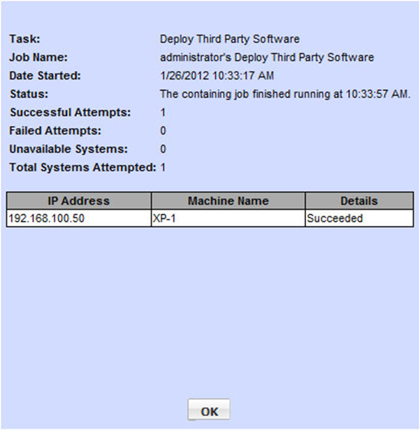 When the job is finished, check the Status message to confirm that CloudCare Agent was deployed successfully.