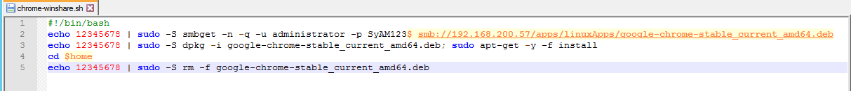 echo 12345678 | sudo -S smbget -n -q -u administrator -p SyAM123$ smb://192.168.200.57/apps/linuxApps/google-chrome-stable_current_amd64.deb
