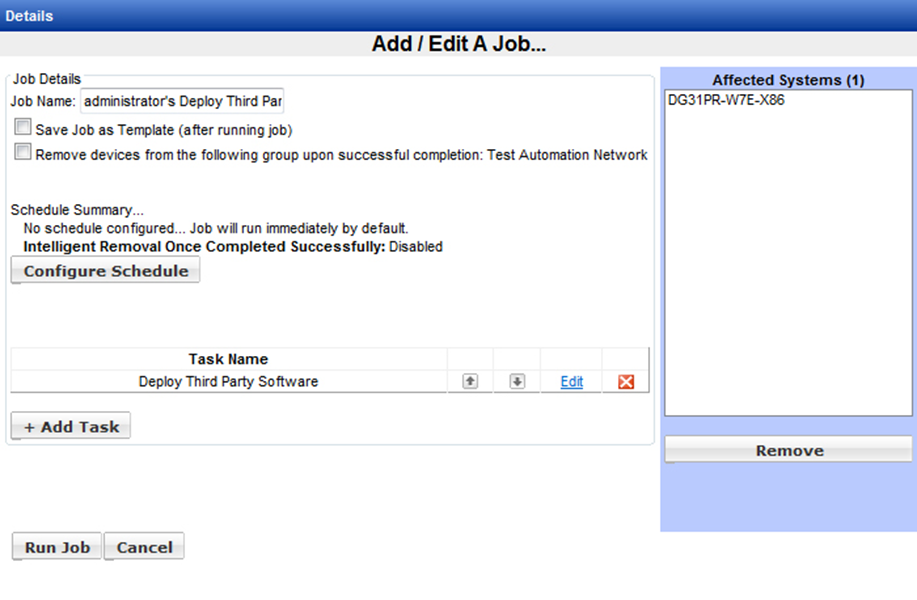 On the Add/Edit a Job page, click the Run Job button, then click OK to confirm. The installation will begin shortly.