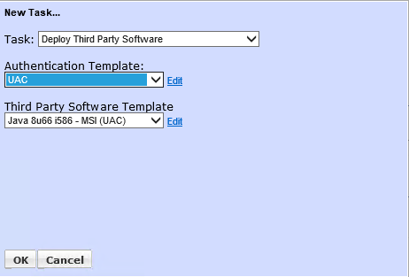 When running the Third Party Deployment Task you must use the UAC Authentication Template