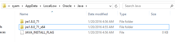 Now open up file explorer to the path where the MSI was created by the Java installer - there will be a folder created based on the Java installer being i586 or x64