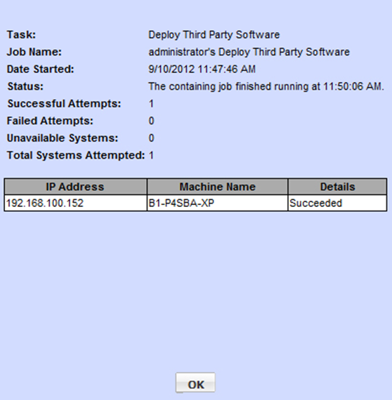 After the job is finished, you may review the status by finding the job in the Status area and clicking the View Details link.