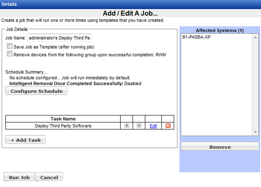 On the Add/Edit a Job page, click the Run Job button, then click OK to confirm. The installation will begin shortly.