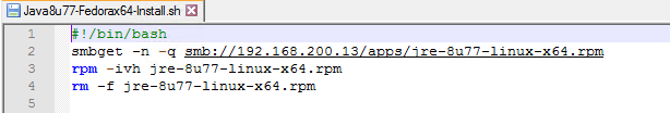 Create the following script using a text editor on Linux or using or with Notepad++ (with EOL Conversion set to Unix) and save it to the shared apps folder on the NFS share