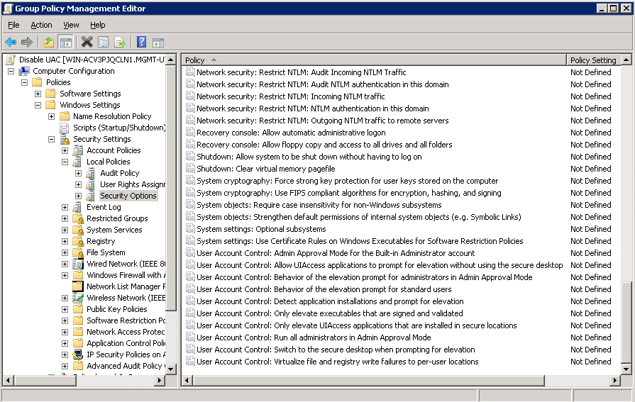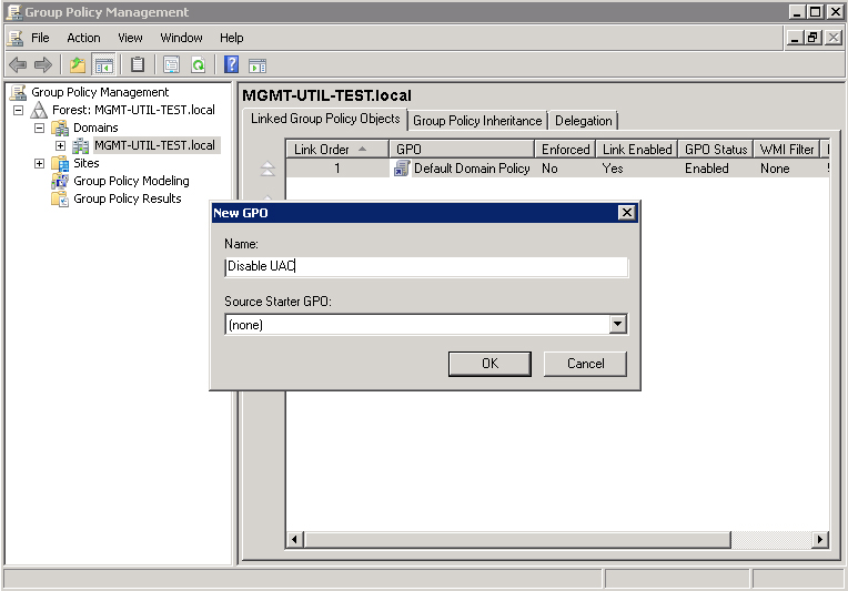 In an Active Directory environment you can configure a Group Policy Object on your domain to enforce UAC settings. In our example, we will configure a domain controller running Windows Server 2008 R2 to disable UAC for administrators.
