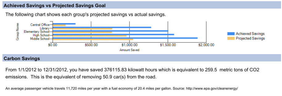 ✓Amount Saved: Actual money saved for the group, based on kWh savings calculated and cost per kWh specified in Administration Settings