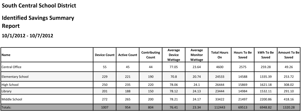 During the data collection phase, the Power Auditor is in Identified Savings mode. When we calculate Identified Savings, we compare the number of hours that a system is actually powered on with the number of hours we would like it to be running. Power Auditor provides default settings for system and monitor wattage consumption, as well as power cost per kilowatt hour. The IT manager can override these settings to improve the accuracy of calculated savings.