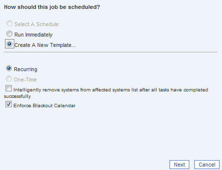 Select the systems or group that you wish to apply the Critical Patch job to, right click and choose Schedule a job, then choose the job template you saved called Critical Patching Tuesday 7pm.