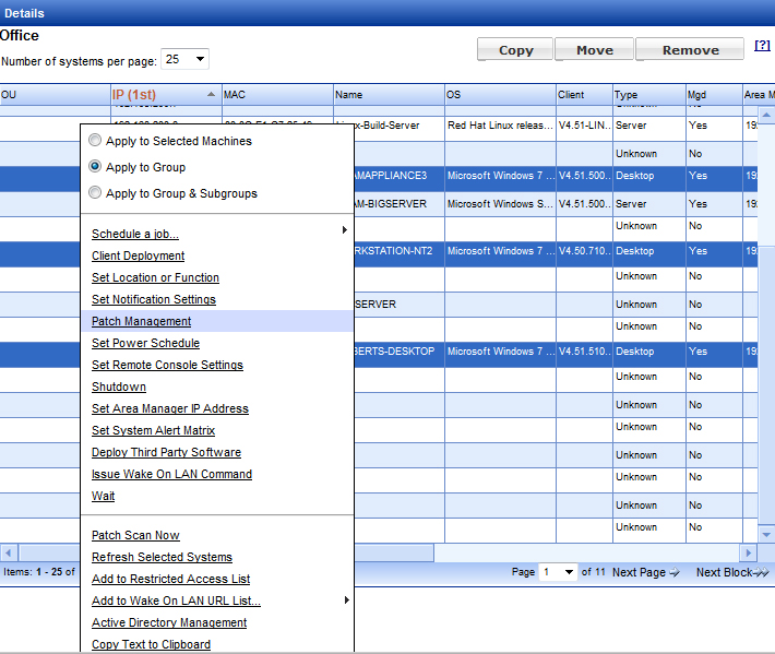 Please note that systems must have the System Client installed, running and managed by a System Area Manager before you can perform Patch Management actions to them.