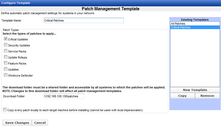 Enter a Template name and check which types of patches are to be scanned and deployed when using that template.
