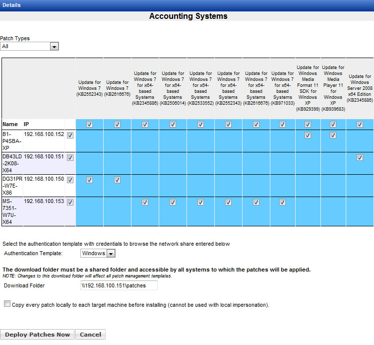 Please Note that the Management Utility downloads the identified patch files automatically from Microsoft if it does not find them already stored on the network share defined for storing the patches.