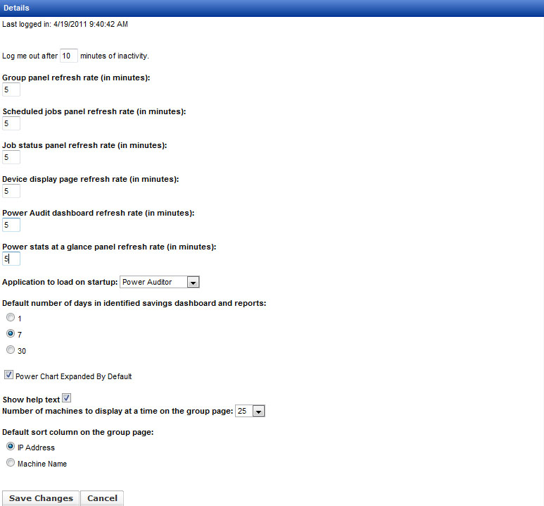 You can choose to have either Power Auditor or Management Utility loaded by default on startup, set the default number of days for the Power Auditor’s dashboard and reports, and whether to expand the power chart.