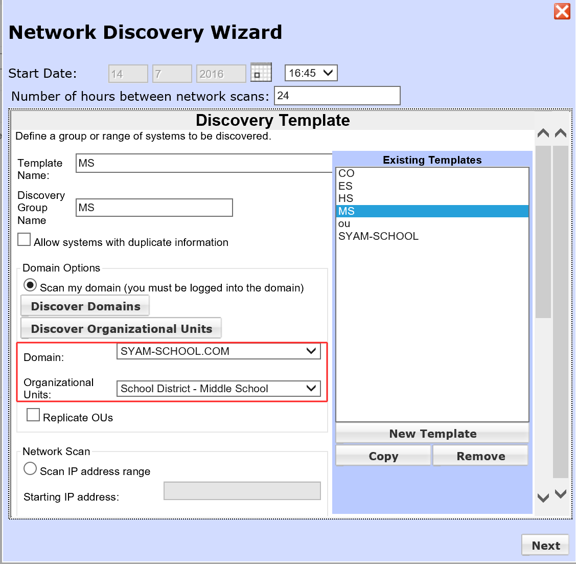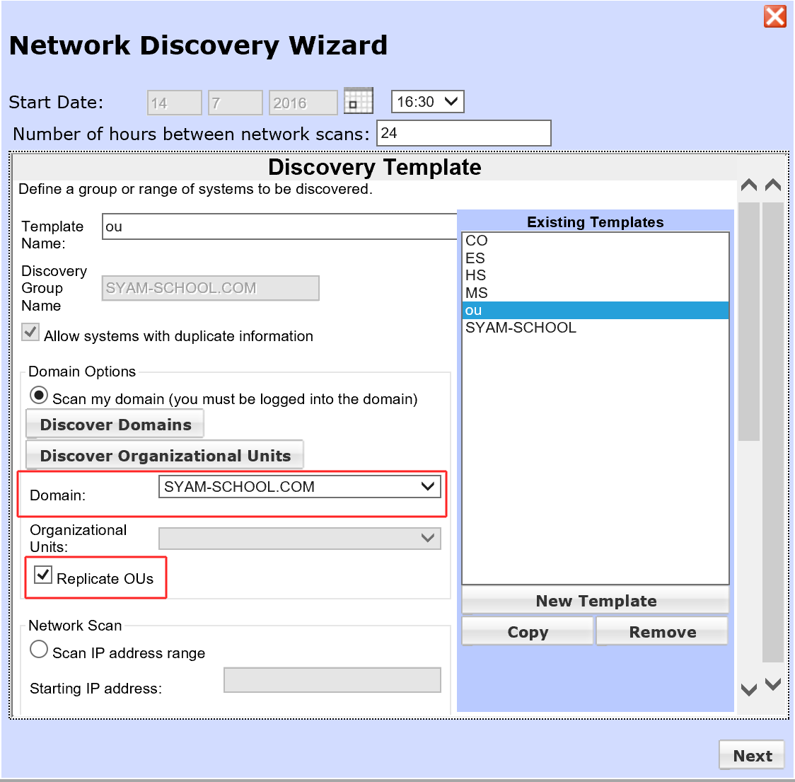 When you discover your devices via the Domain / Organizational Unit discovery method it will update the systems found previously by IP Address scans with the OU nae they were discovered in.