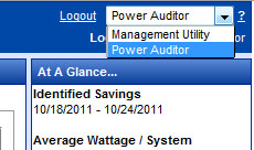 Select Power Auditor from the drop down menu in the top right corner of the browser page. (Either Power Auditor or Management Utility can be loaded on startup by configuring the option on the My Settings page.)