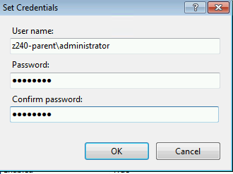Enter the Domain Username and Password that has administrative rights to the Server running the SQL database instance you are remotely connecting to.