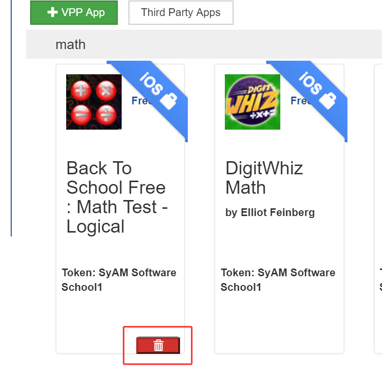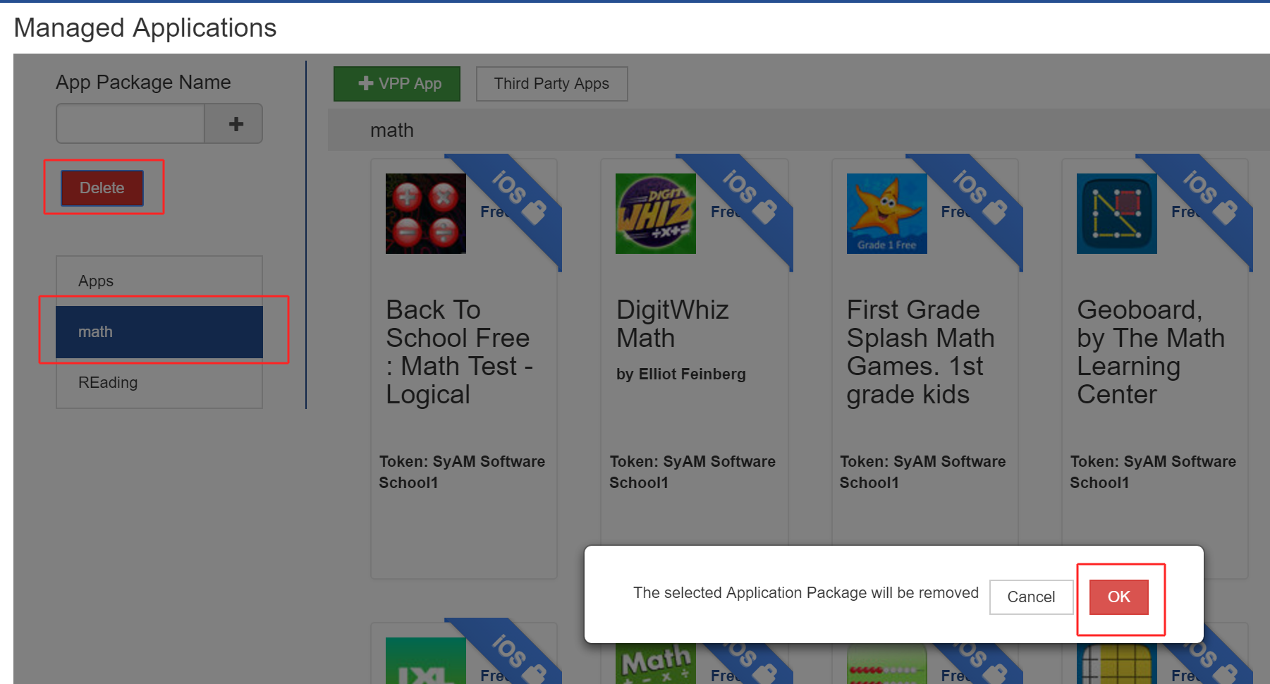 To remove an App select the App Package, then press the delete button next to the app you wish to remove.