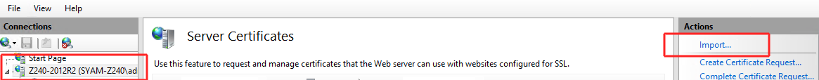 4. Import into IIS Server Certificate Personal MDM Certificate