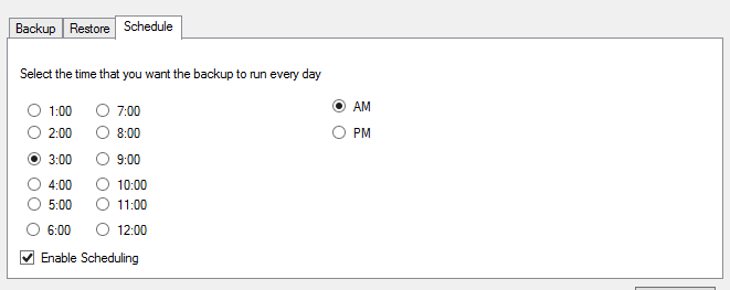 Check the Enable Scheduling check box to enable the daily scheduled backup.