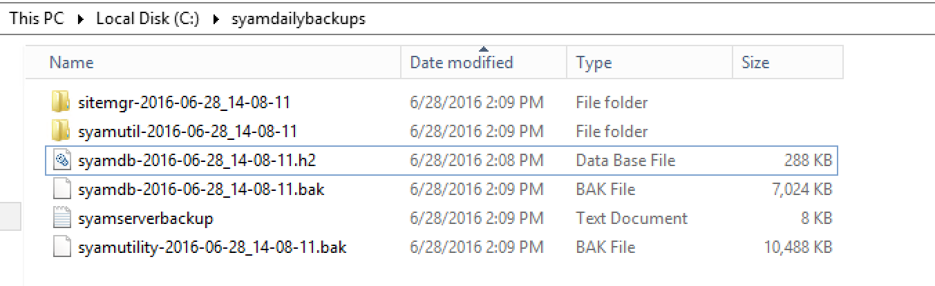 •“2016-06-28_14-08-11”. The file is found in the syamdailybackup folder