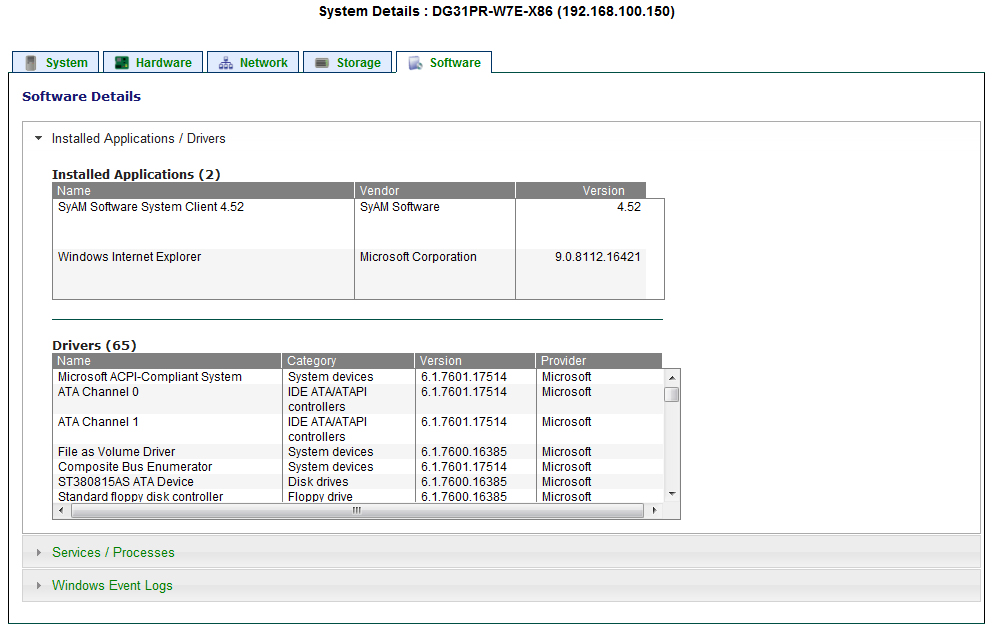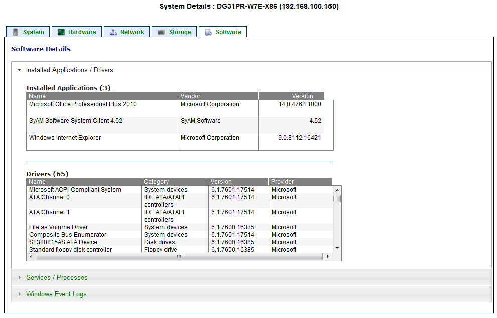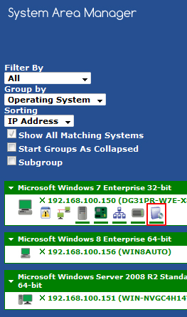Now you can test on a single system. In System Area Manager, identify a system running Office 2010, locate the system in the management tree, and click the icon to display software.