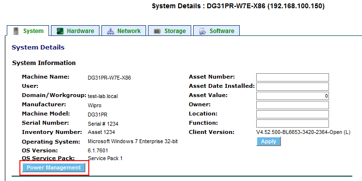 Now that Management Utility has reported successful deployment of our Office 2010 uninstallation, we’ll want to confirm that the client system has not rebooted, perform the required reboot to complete the uninstallation process, and verify that Office 2010 has been removed. We can make these checks using System Area Manager. First, wait a few minutes to allow for any restart, then display the System tab for the client system.