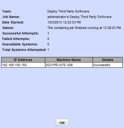 After the job is finished, you may review the status by finding the job in the Status area and clicking the View Details link.
