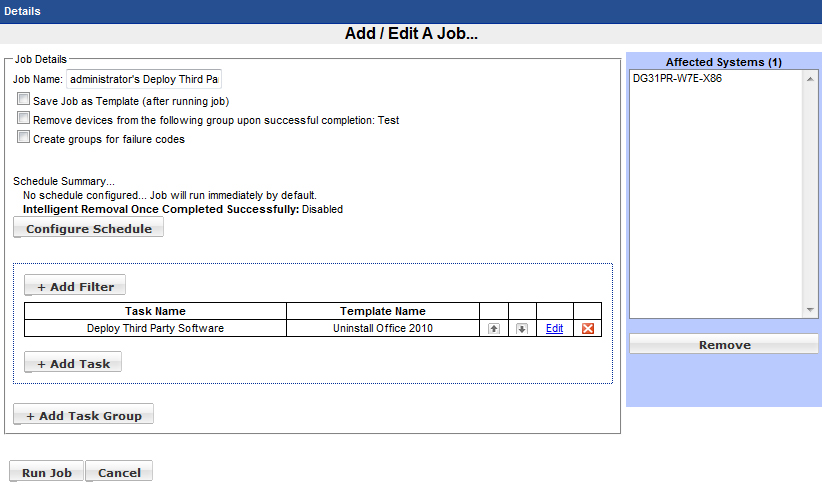 On the Add/Edit A Job page, click the Run Job button, then click OK to confirm. The job will begin shortly.