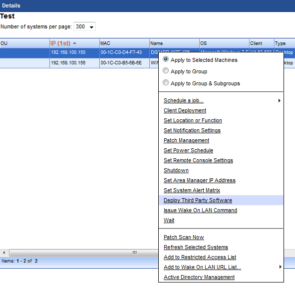 In Management Utility, find this system in the Groups area, select the system by clicking its row, then right-click to display the context menu. From the menu, choose Deploy Third Party Software.
