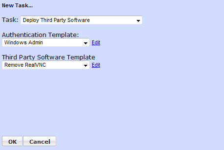 In the New Task box, choose the Windows authentication template and the newly created uninstallation template. Click OK.